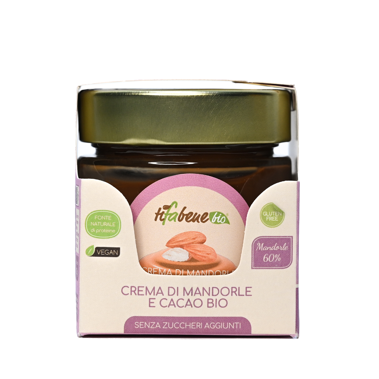 Crema di mandorle e cacao bio senza zuccheri aggiunti
